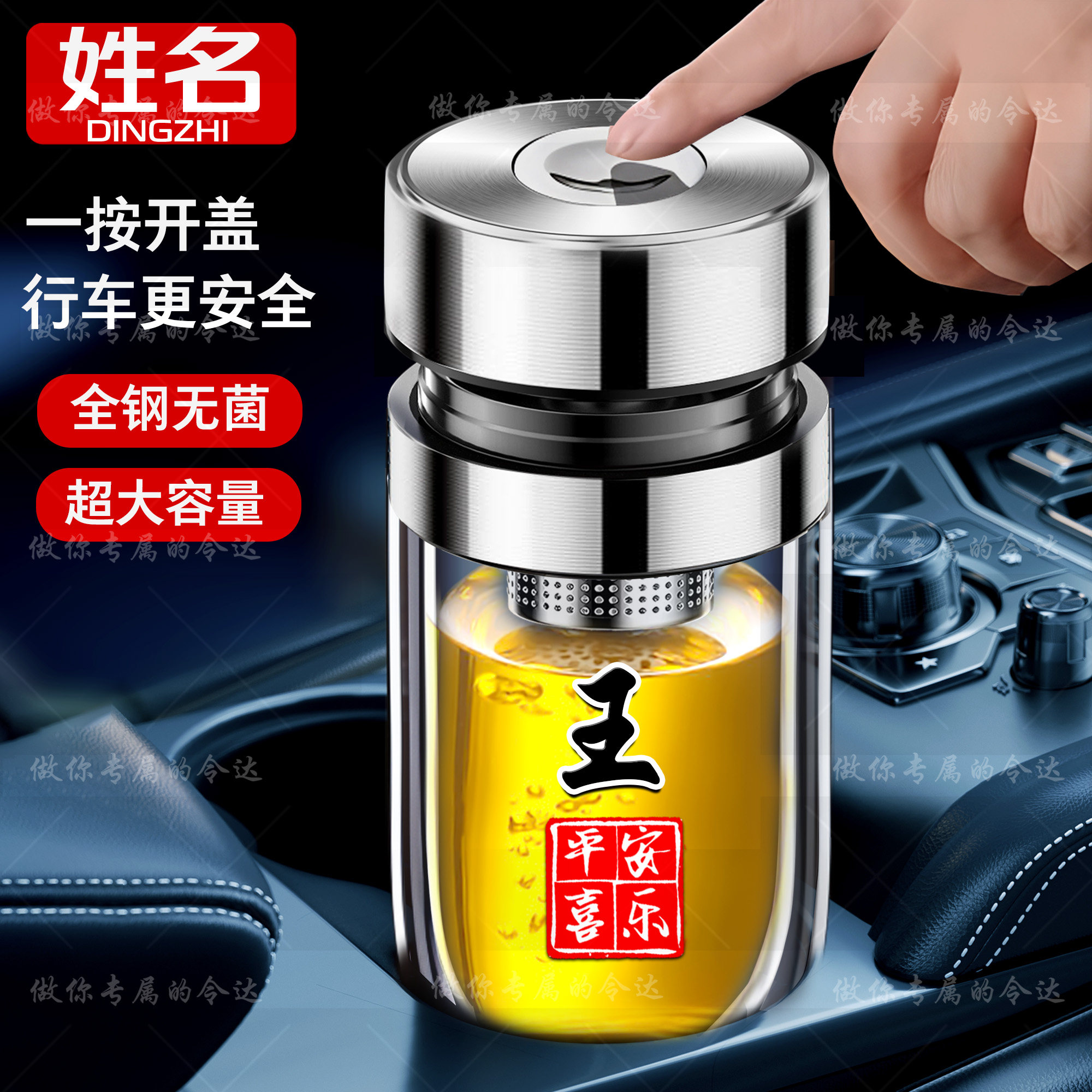 鹅蛋速开玻璃杯一键开盖双层水杯车载家用杯子定制姓氏logo便携杯