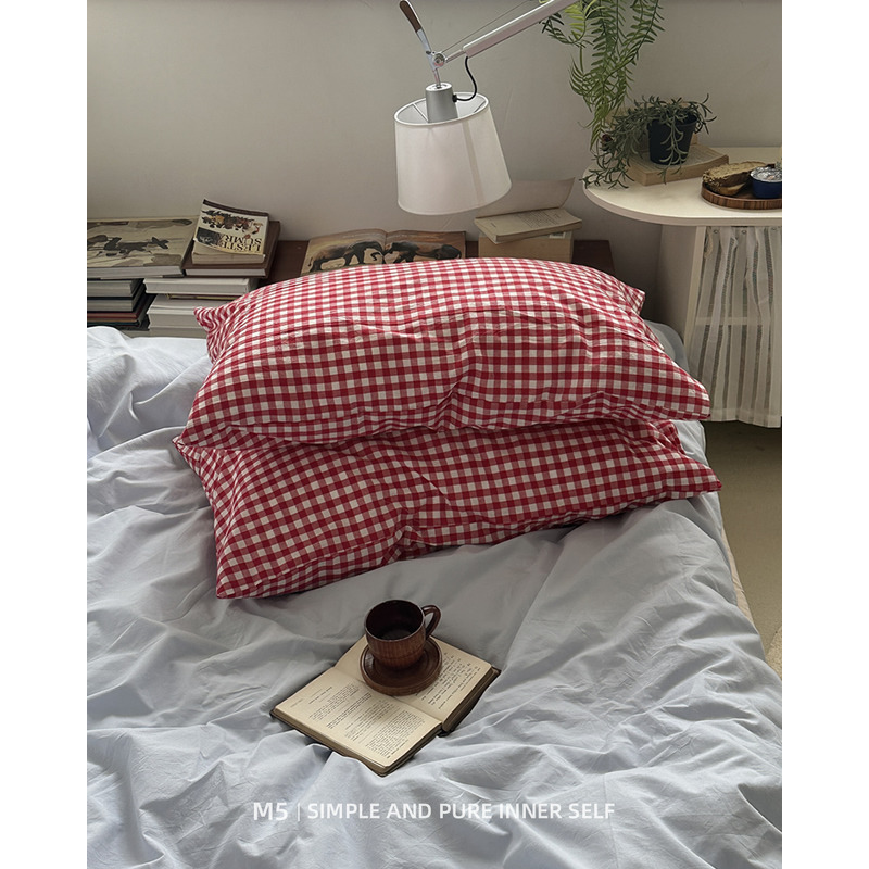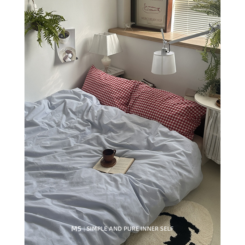 草莓饼干韩式少女格子全棉色织床上四件套纯棉床单被套床笠款床品