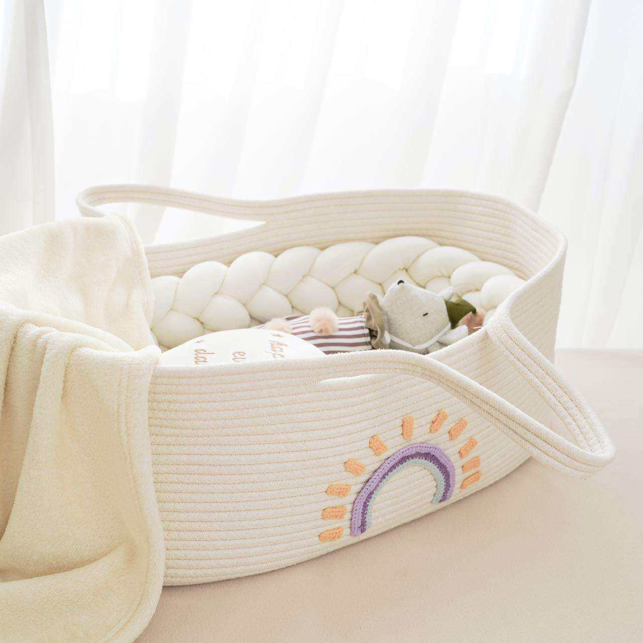 新生儿外出棉绳编织提篮 婴儿便携式折叠提篮 多功能睡床睡篮车载