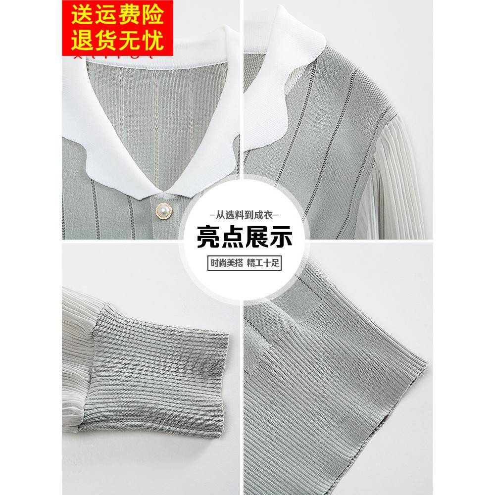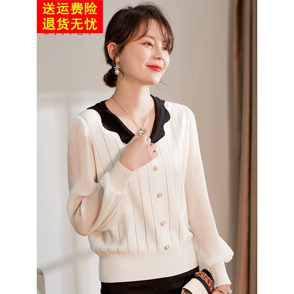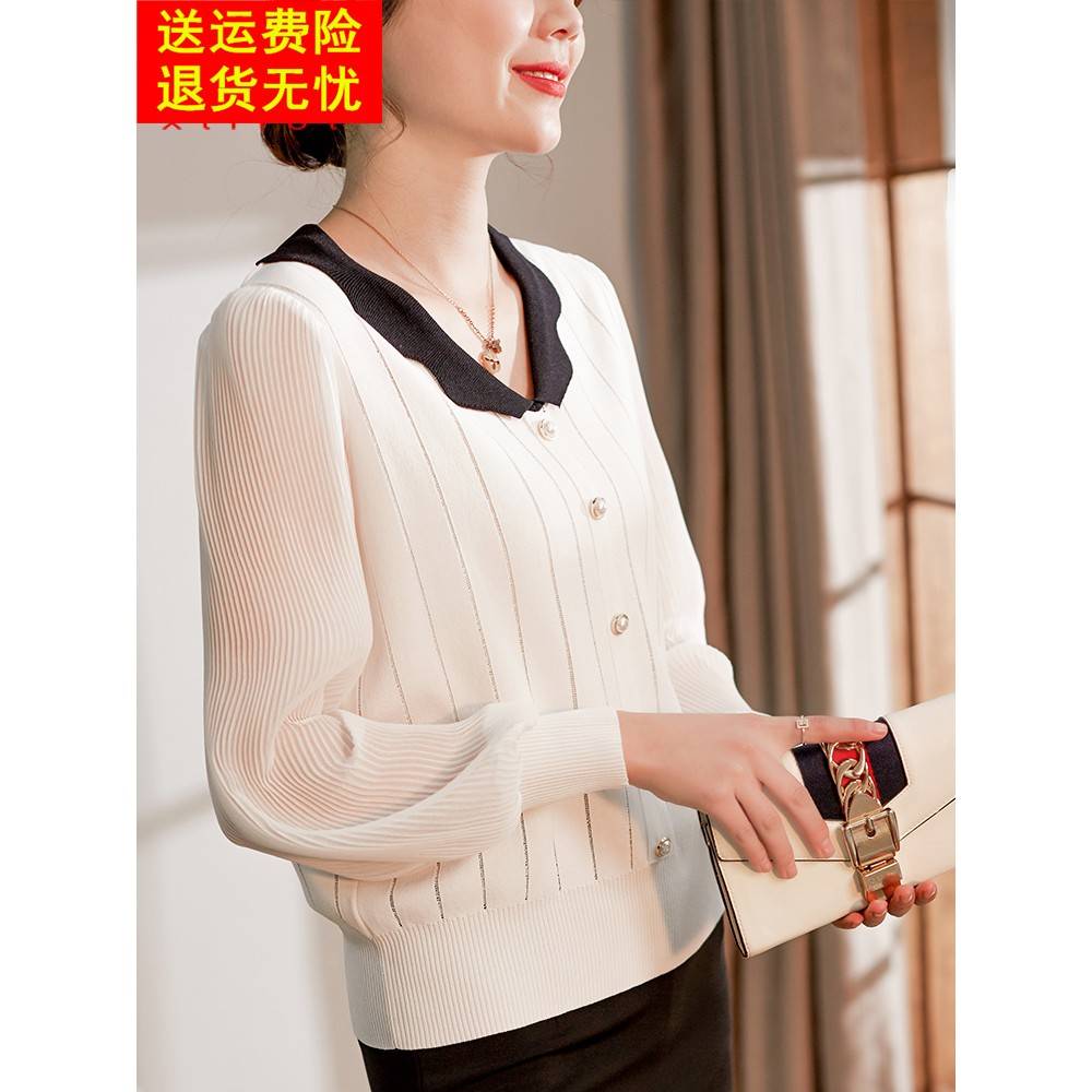 喜卉妈妈洋气薄款打底衫中年女装纱袖T恤中老年秋装时尚针织小衫