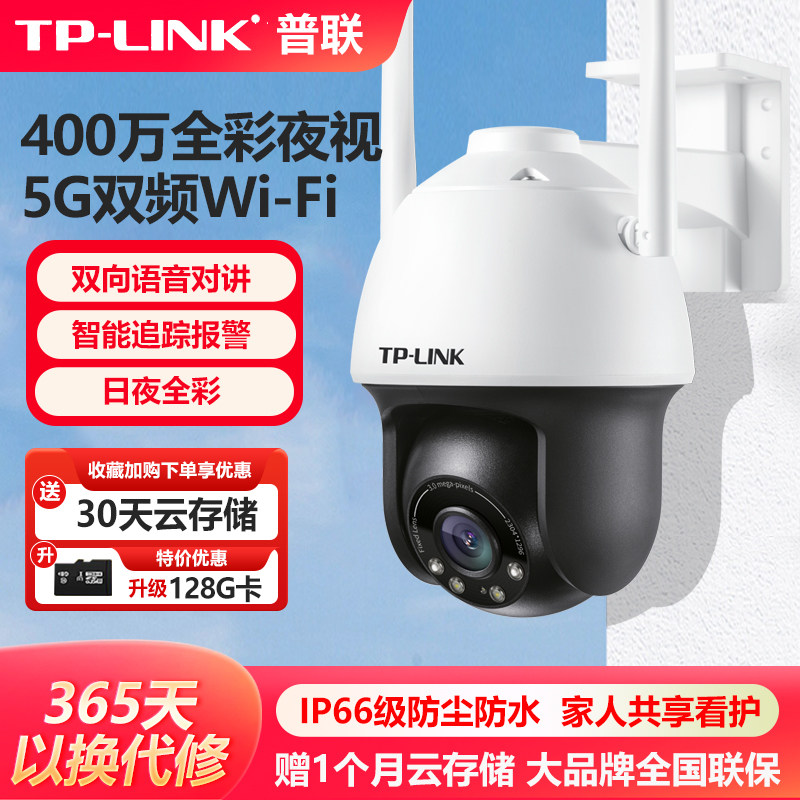 普联TP-LINK无线摄像头室内外家用防水球机800万全彩夜视高清监控wifi远程云台手机4G全网通双摄TL-IPC633-A4