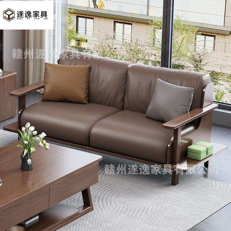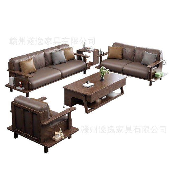 黑胡桃木实木沙发组合客厅家用大小户型简约现代成套家具沙发
