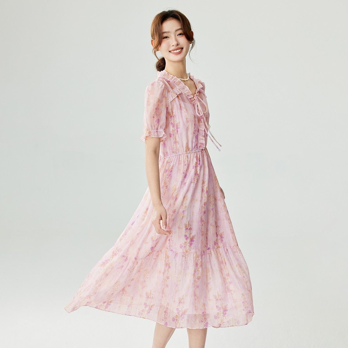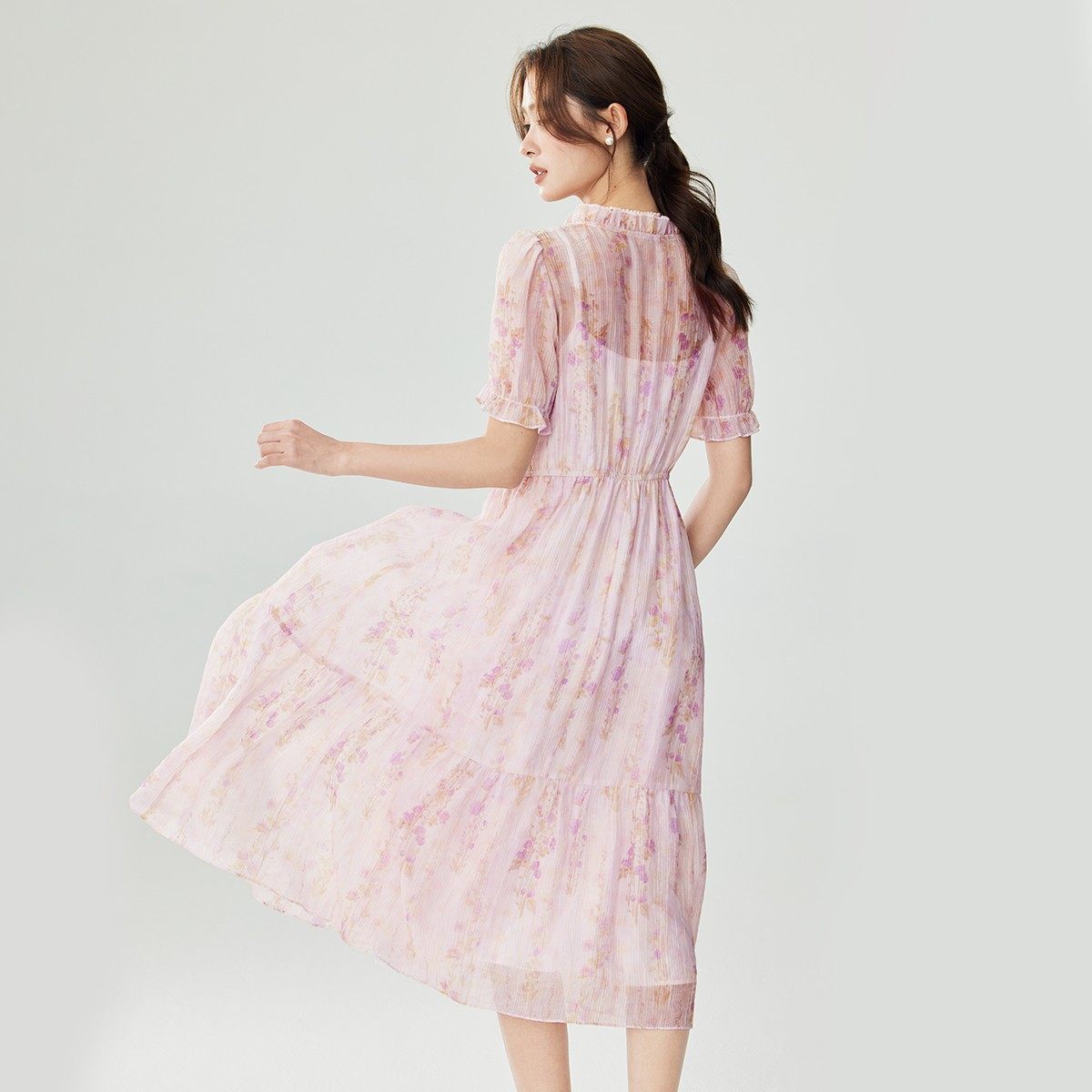 茵曼天丝法式田园碎花连衣裙2025夏季法式浪漫气质度假甜美A字裙