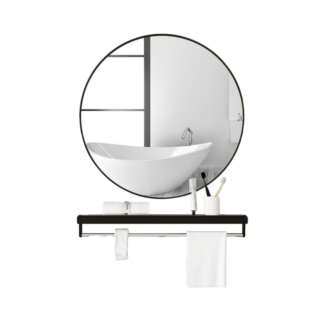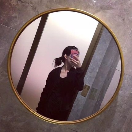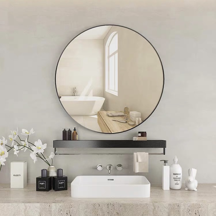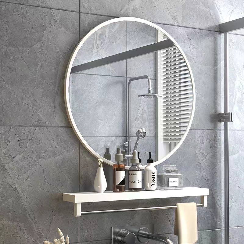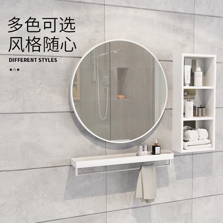 浴室镜铝合金边框圆形镜子挂墙式家用卫生间洗漱台化妆镜带置物架