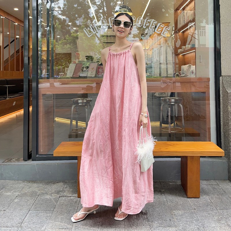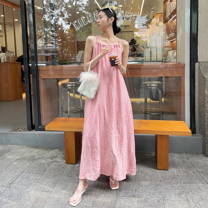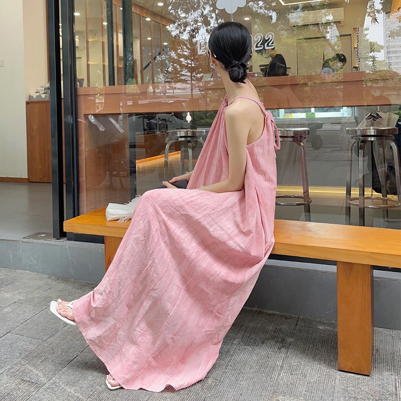 速发海南三亚海边度假沙滩裙拍照超仙法式露背挂脖吊带连衣裙