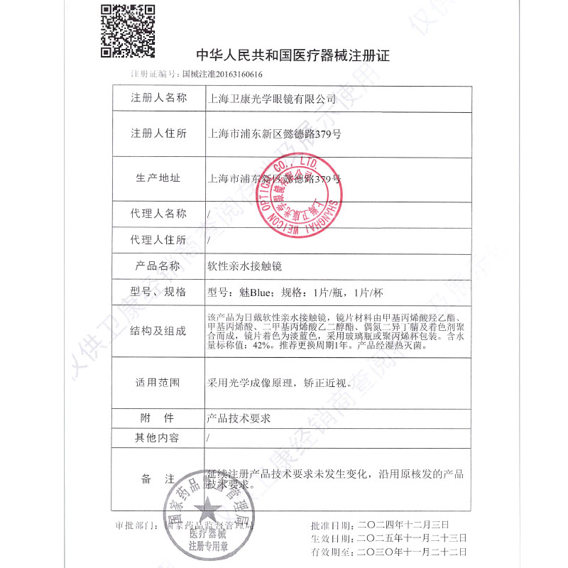 卫康隐形近视眼镜魅blue年抛盒高度数2000透明境官网1片装正品sk