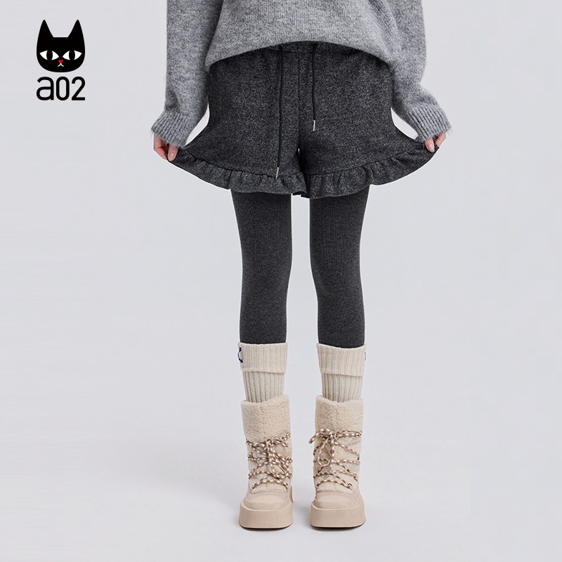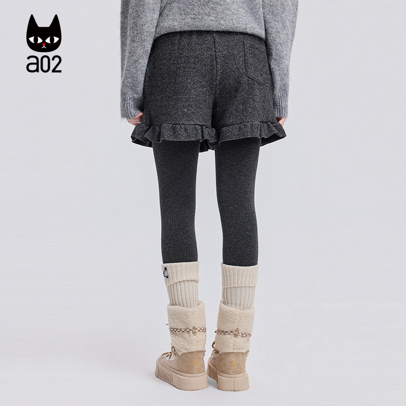 a02宽松加厚毛呢花边短裤女2025新款冬季休闲裤子阔腿通勤冬装