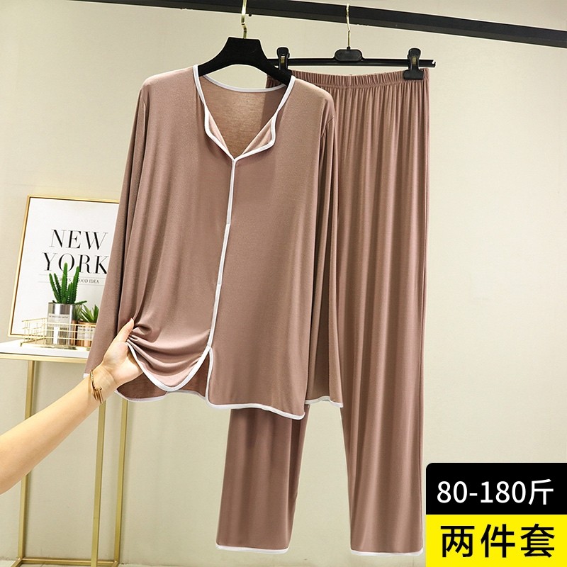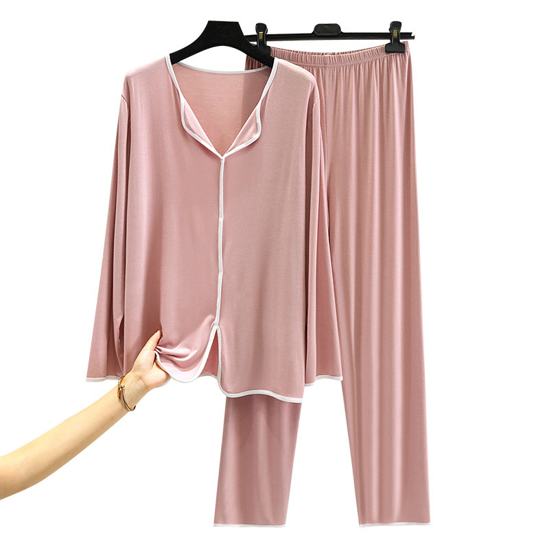 莫代尔女士秋冬薄款宽松显睡衣套装简约休闲长袖长裤两件套家居服