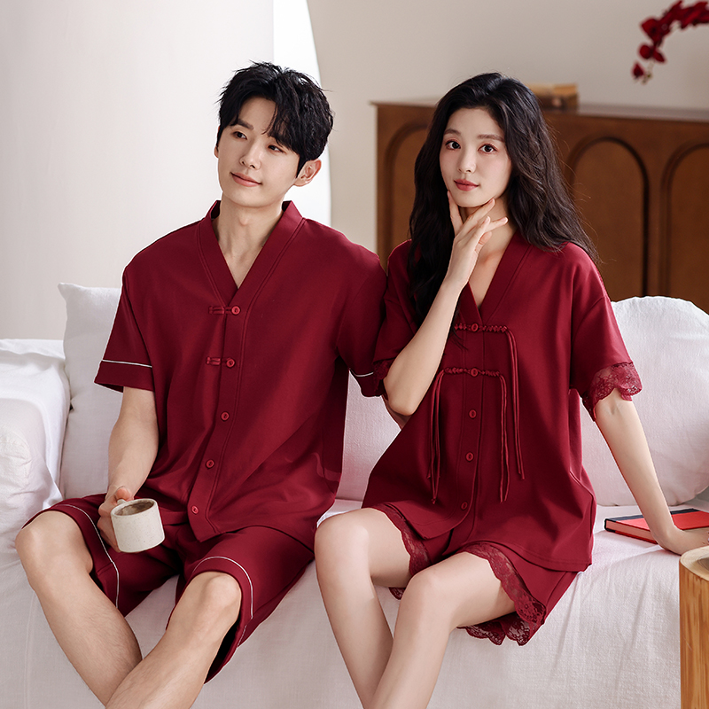 纯棉新婚结婚情侣睡衣男夏季红色国风家居服女士喜庆短袖睡衣裤套