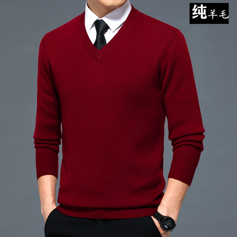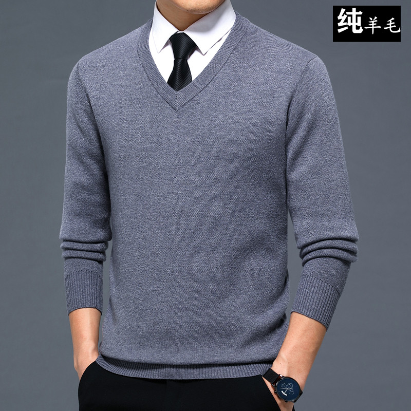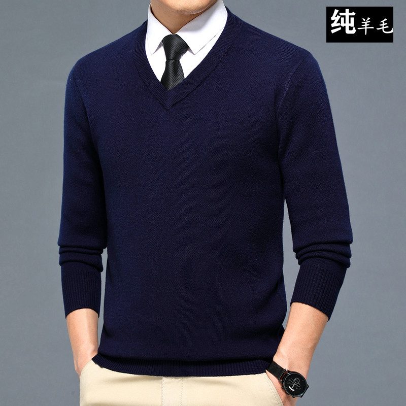 鄂尔多斯市V领羊毛衫男士冬季新款加厚针织毛衣男鸡心领纯羊绒衫