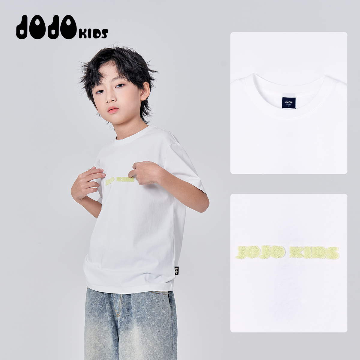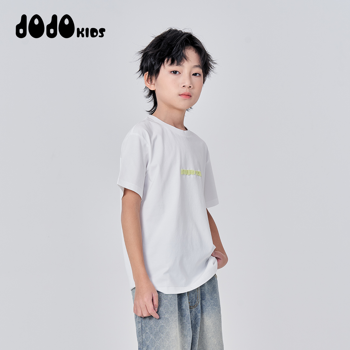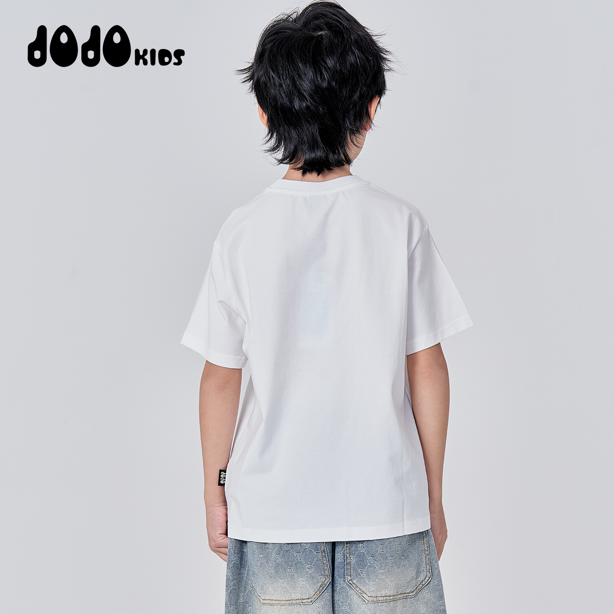 JOJO夏季新款男童短袖T恤中大童宽松洋气个性百搭薄款圆领上衣潮T