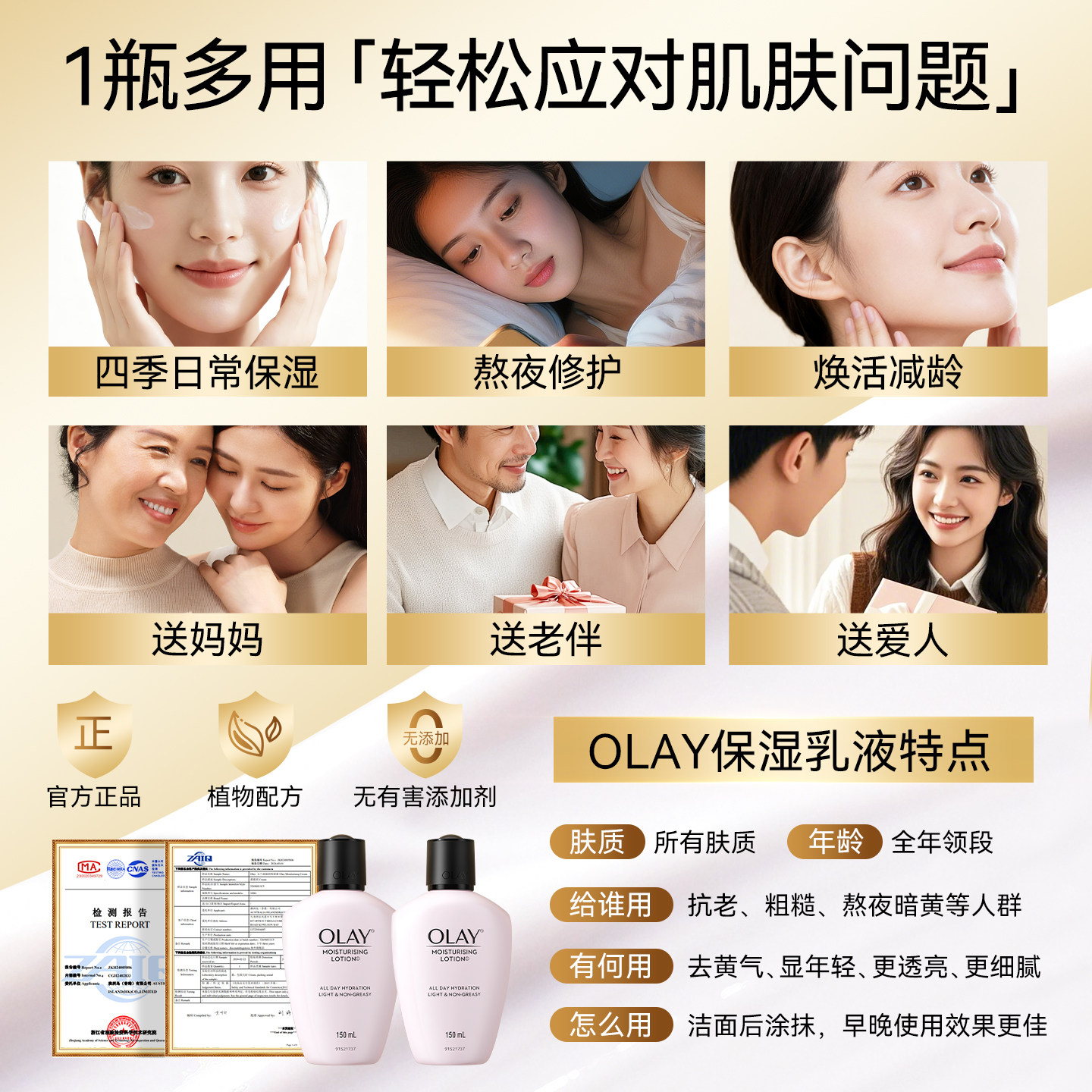 olay玉兰油乳液保湿面霜滋润补水美修护白润肤霜女官方正品旗舰店