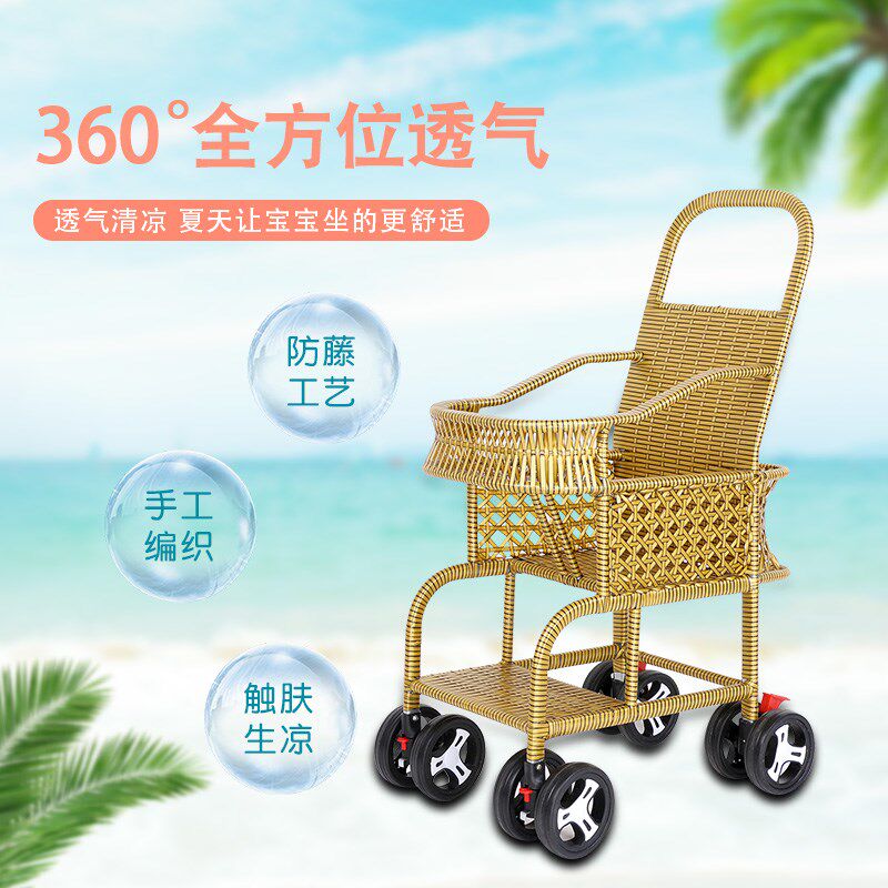 仿藤推车小孩儿童竹子小推车藤椅藤编车夏季宝宝竹藤推车轻便婴儿