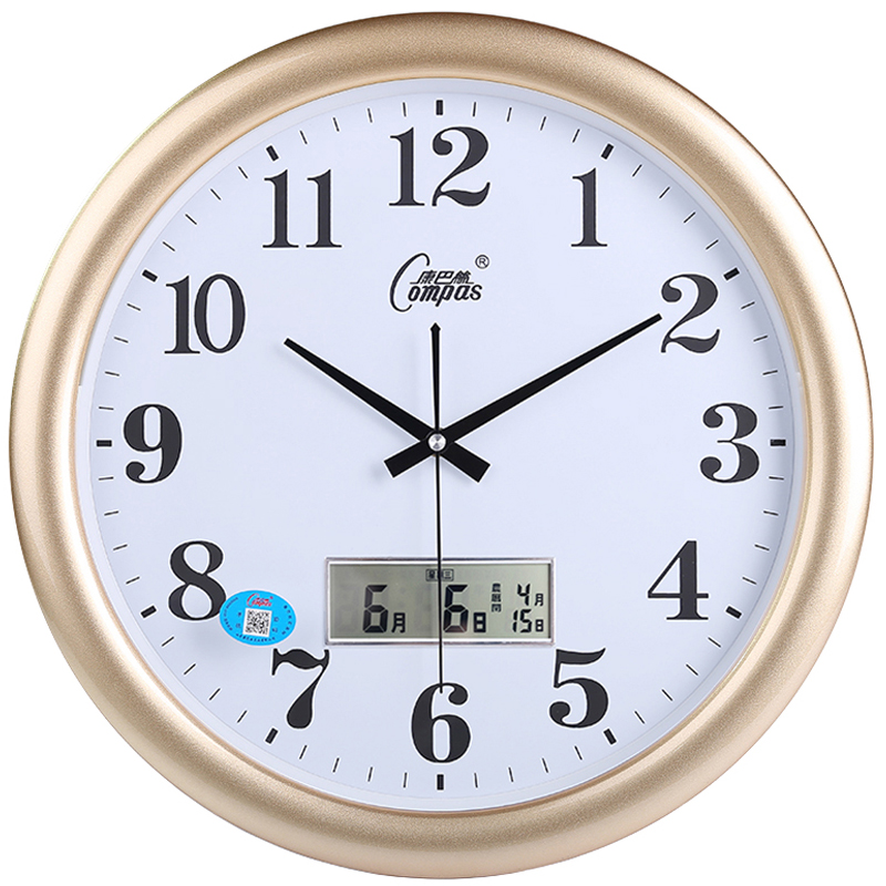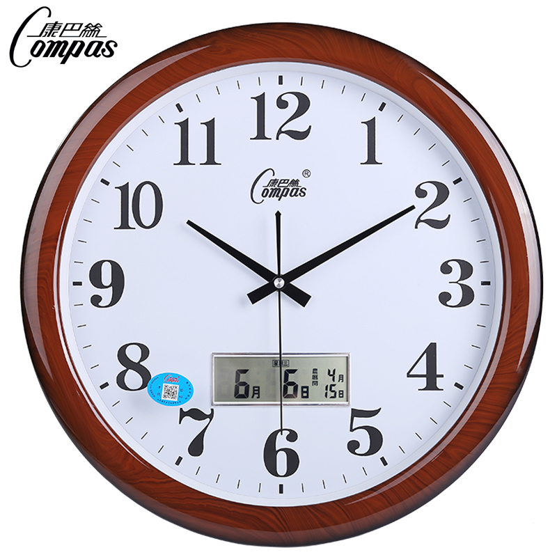 康巴丝16英寸玻璃挂钟客厅扫秒静音机芯钟表简约创意挂表个性圆形