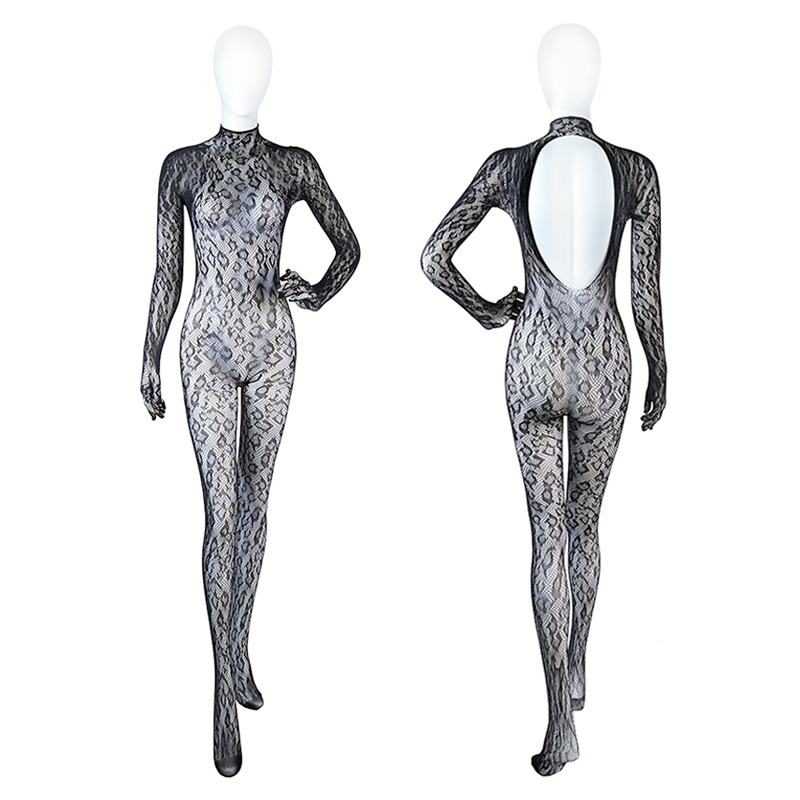 霏慕魅惑豹纹高领大露背连身袜连体丝袜女黑丝性感情趣重口味全包