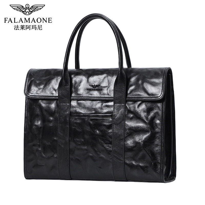 法莱阿玛尼正品牛皮男商务包单肩斜挎包轻奢真皮公文包手提包时尚