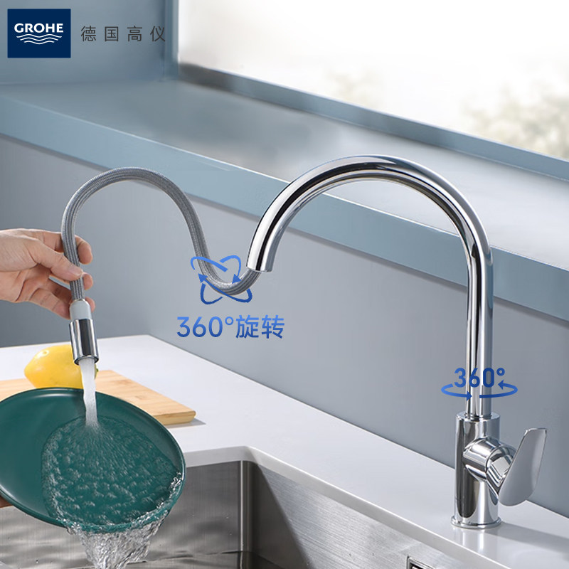 高仪德国进口卫浴厨房龙头可抽拉起泡防溅节水水槽冷热水Grohe