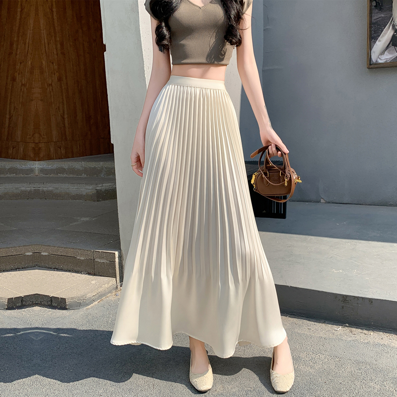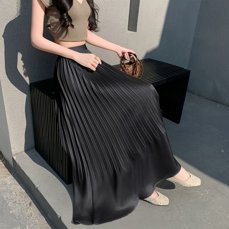 设计感百褶半身裙女春夏2025新款气质梨型身材遮胯垂感a字裙中长