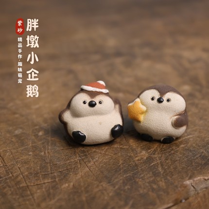 宜兴紫砂茶宠胖墩小企鹅迷你软萌趣味桌面摆件手工制作精品装饰