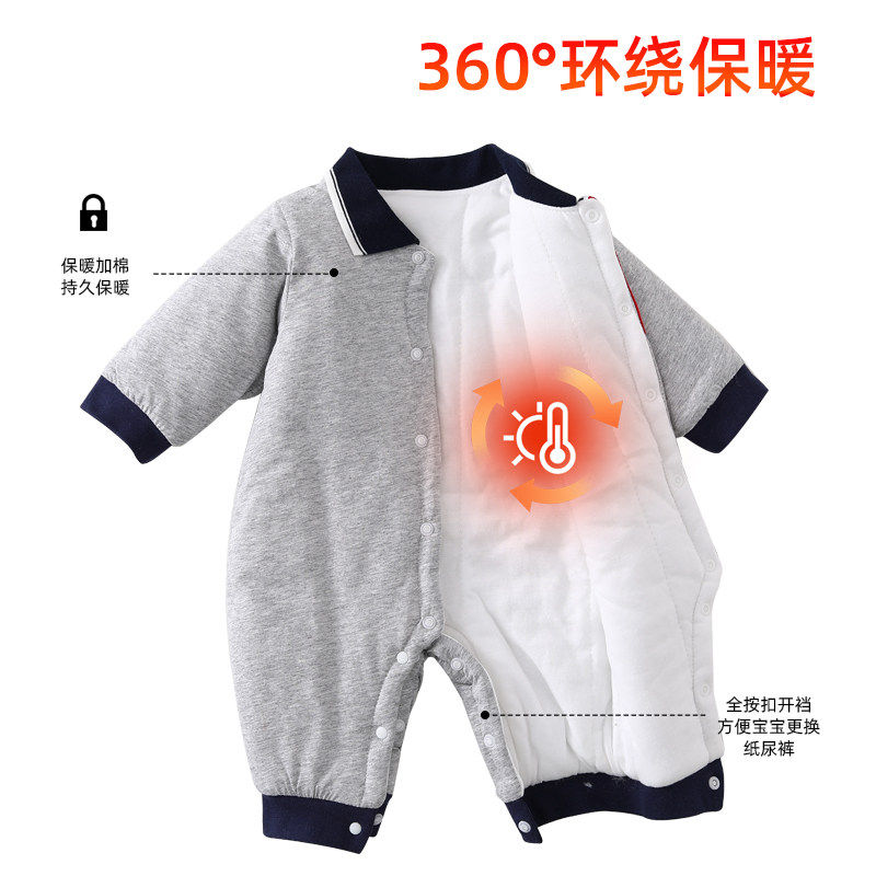 全棉纯棉婴儿衣服冬季加棉长袖哈衣男宝宝连体衣冬装棉服学院风洋