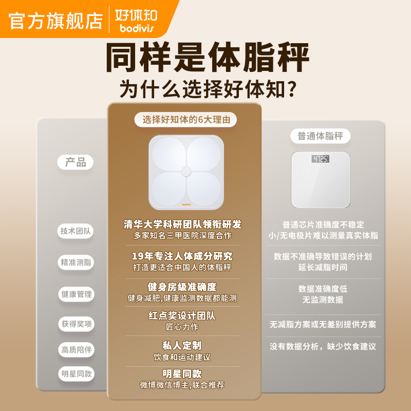清华原同方好体知体脂秤电子秤健身房同款智能精准家用体质称健康