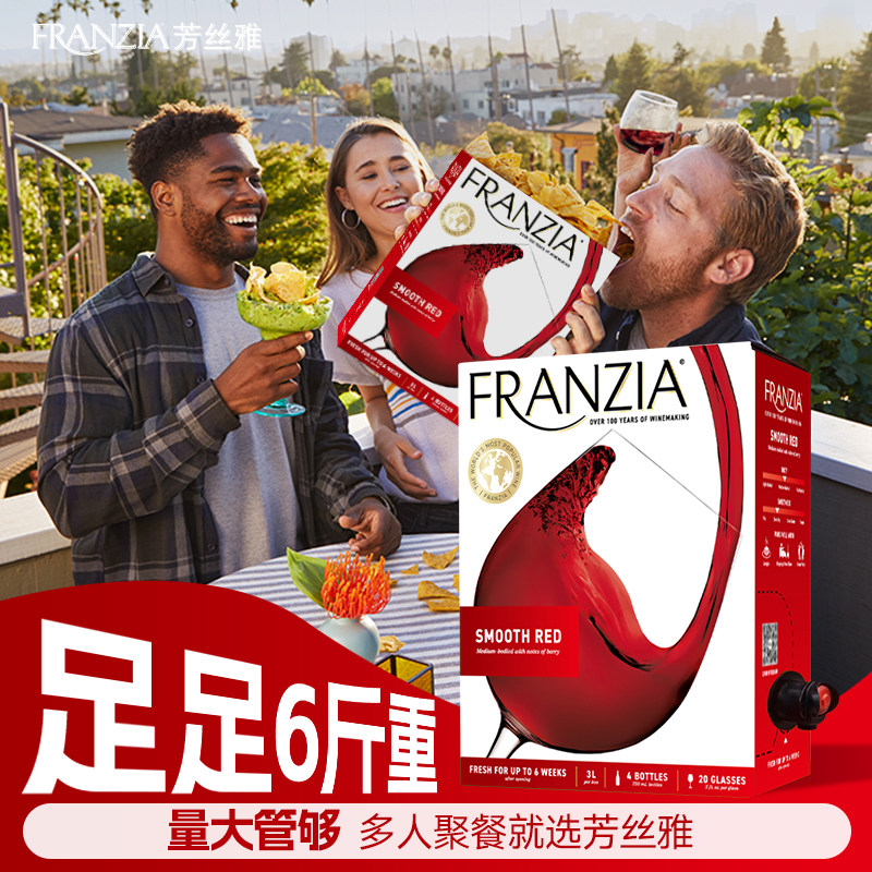 FRANZIA芳丝雅红酒进口半干红葡萄酒3L 盒装红酒袋装酒聚餐送礼酒