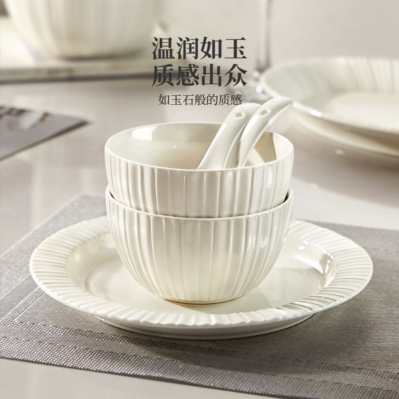 釉下彩白瓷饭碗家用2024新款米饭碗陶瓷小碗吃饭碗碟盘子餐具套装