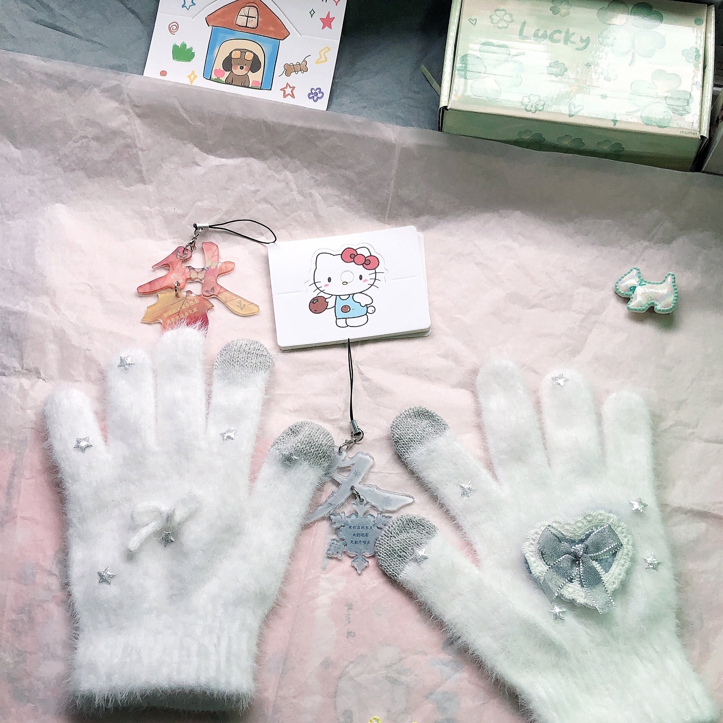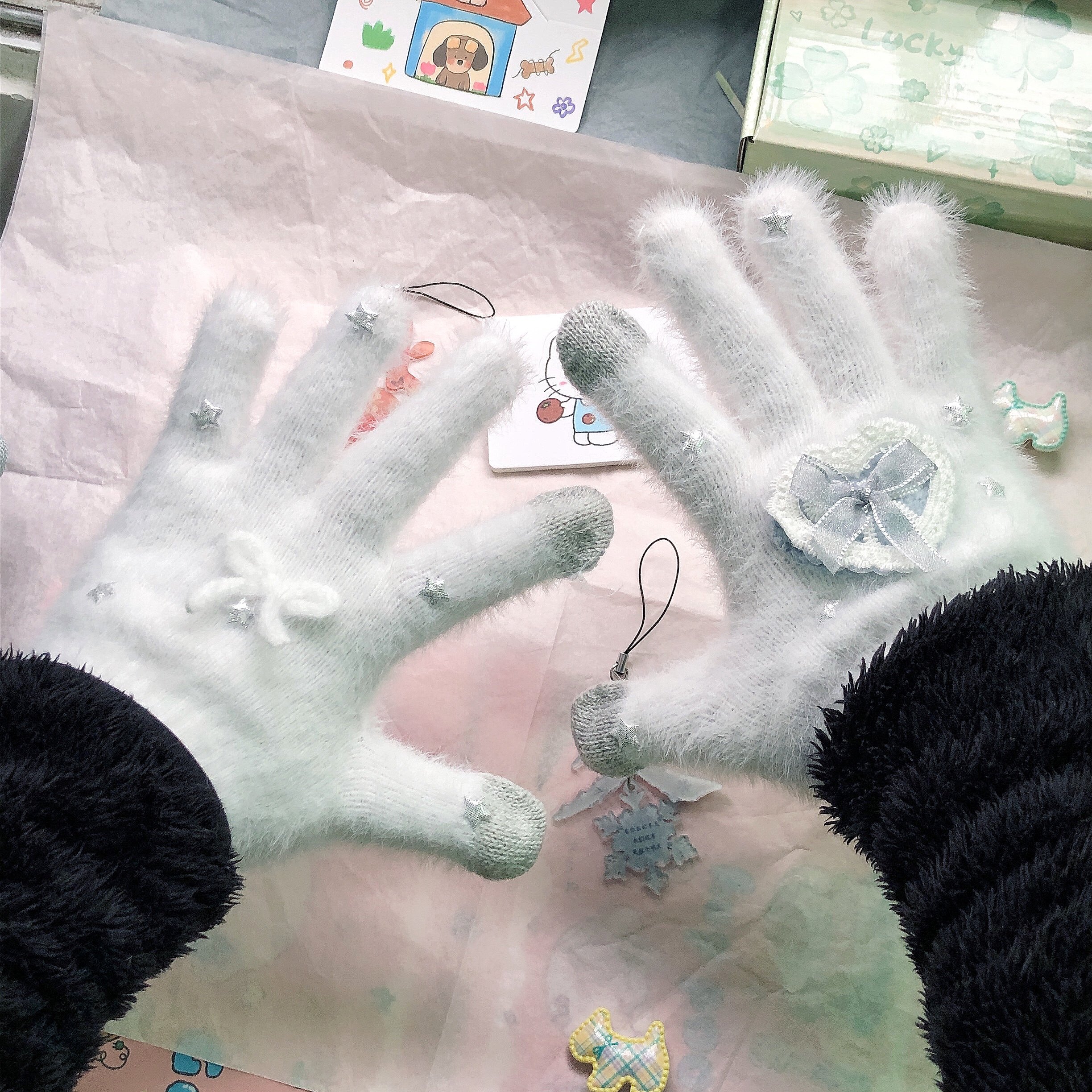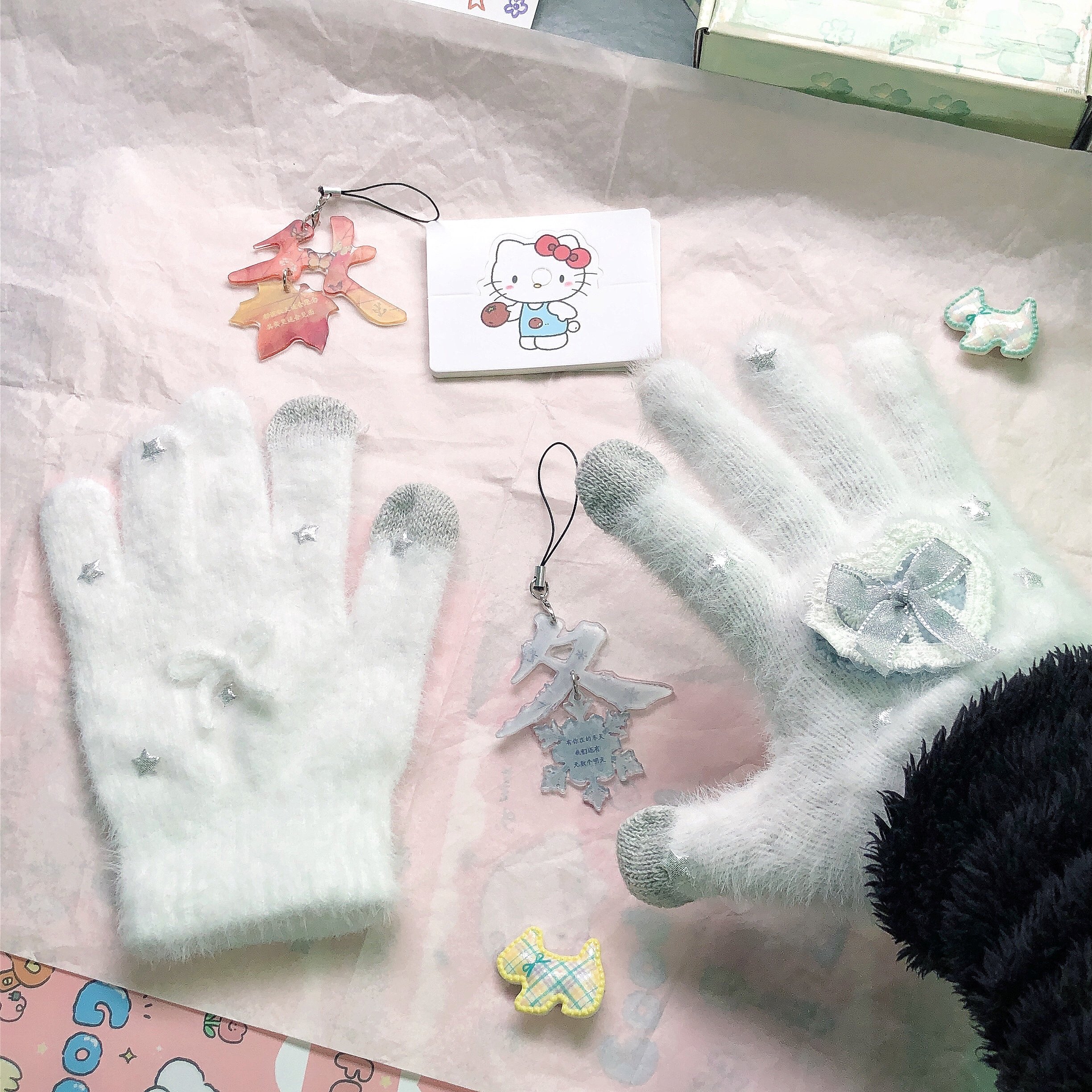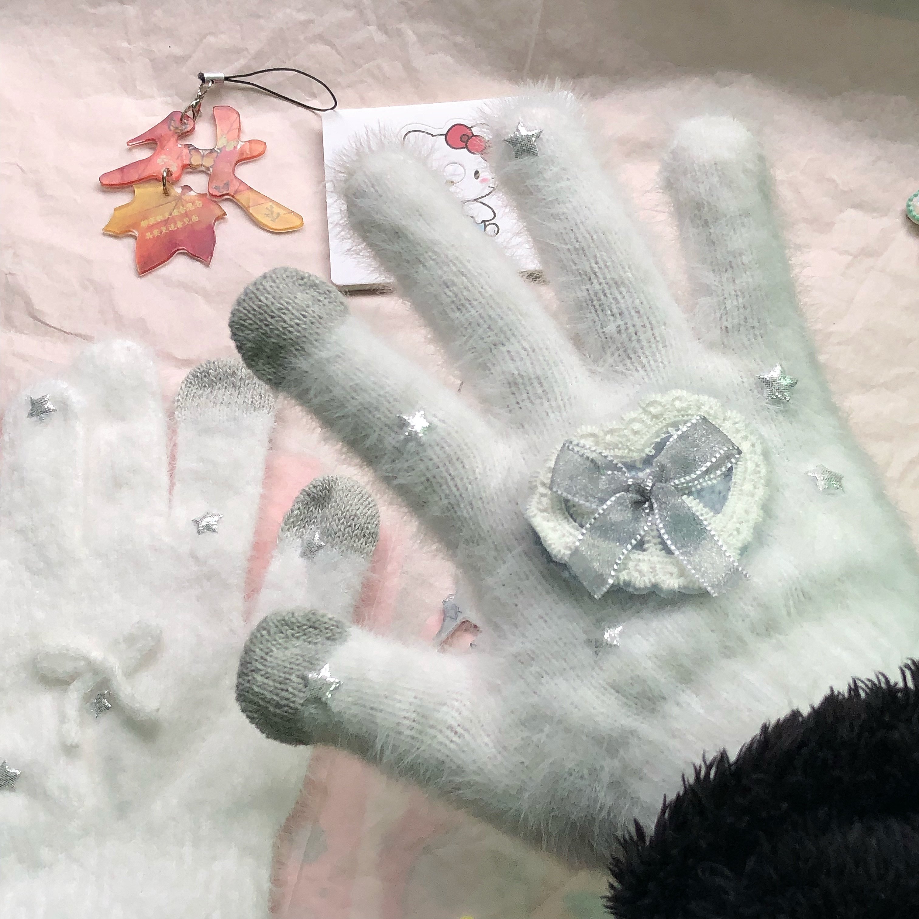 秋冬季闪片星星古早少女y2k可爱加绒白色手套可触屏学生送礼闺蜜
