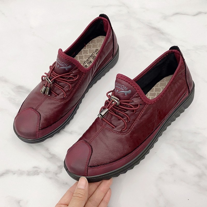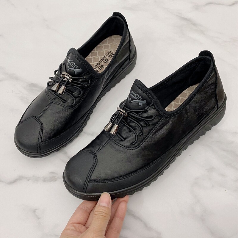 老北京布鞋女鞋新款春季中老年平底一脚蹬女单鞋仿皮鞋轻便妈妈鞋