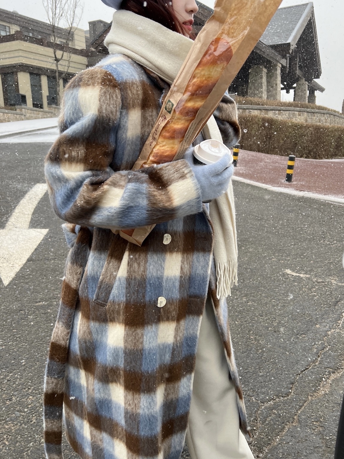 高级感复古格纹羊毛大衣女2023年新款韩版冬季加厚夹棉毛呢外套