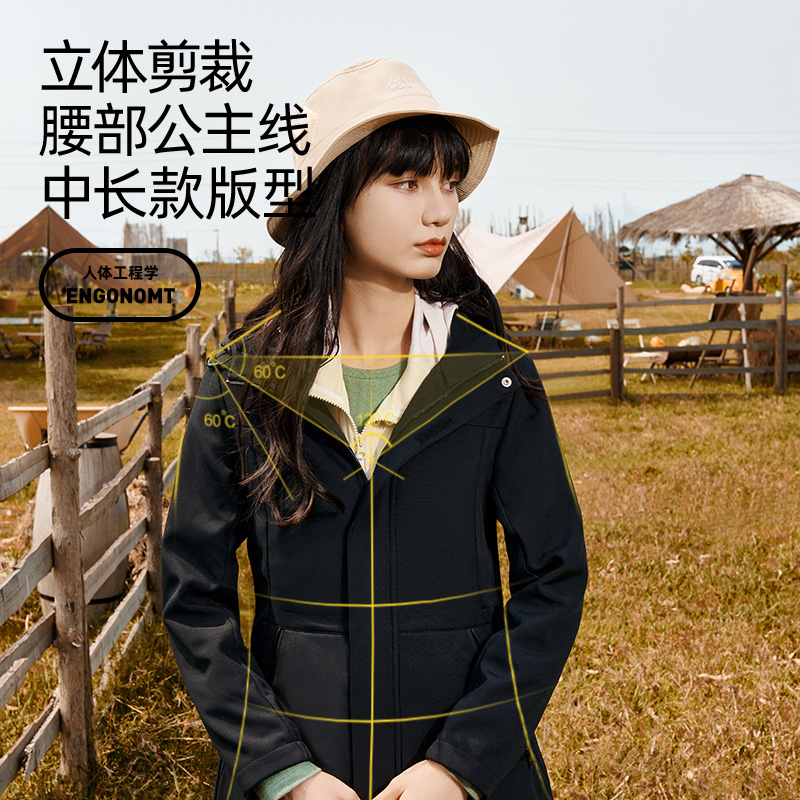 TECTOP探拓户外春秋中长款软壳衣女式防风保暖时尚修身运动旅行外