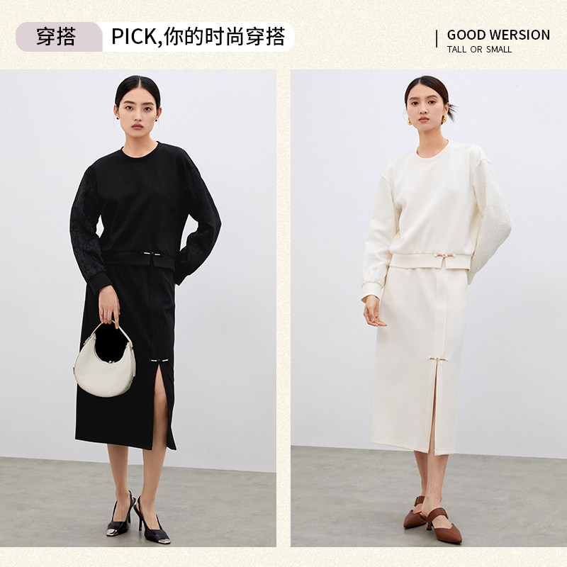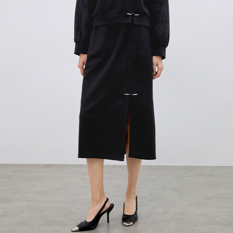 傲丝度新中式半身裙女装开叉设计感小个子百搭直筒裙子中长款半裙