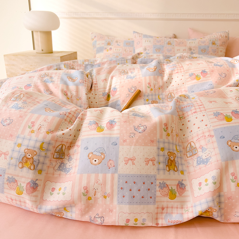 A类全棉双层纱床上四件套100纯棉儿童卡通小清新棉纱三件套4