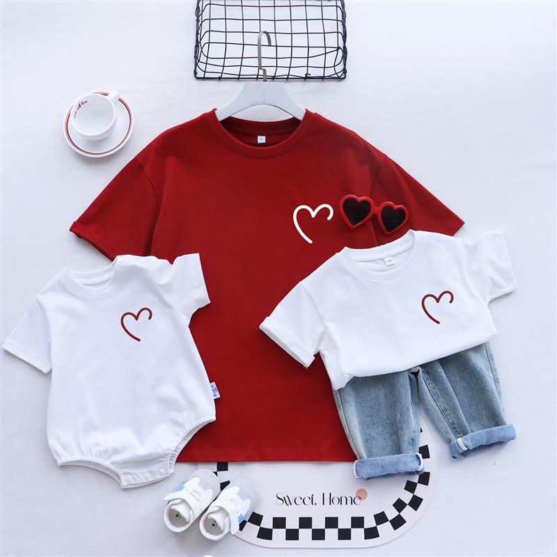 炸街不一样的亲子装母女高级感夏季短袖T恤一家三四口母子拍照服
