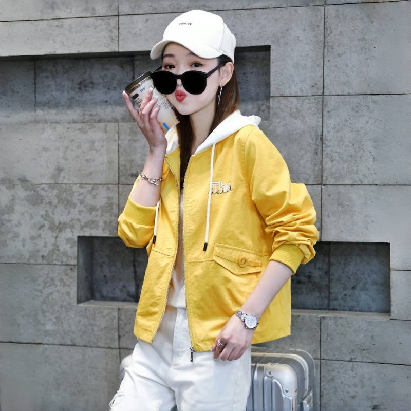墨言歌撞色拼接连帽棒球服女2025年秋季新款韩版宽松百搭绣花外套
