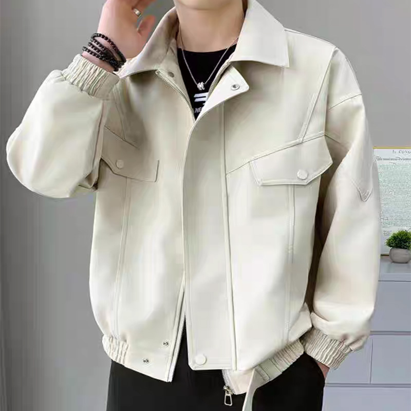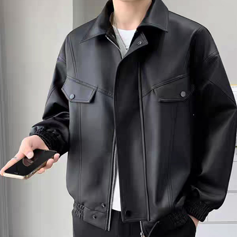 春秋季男士翻领皮衣PU夹克男休闲