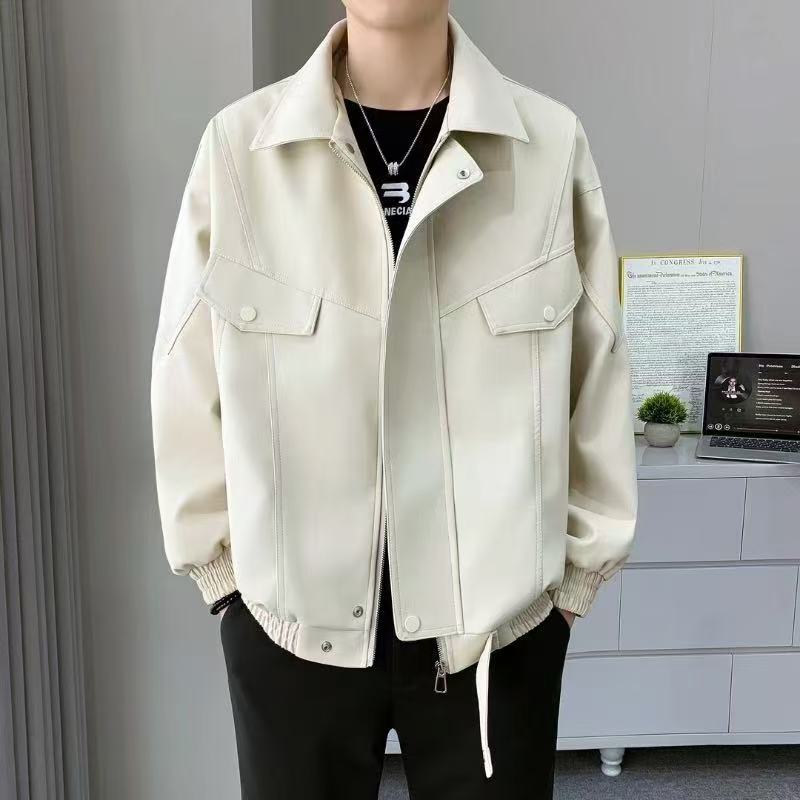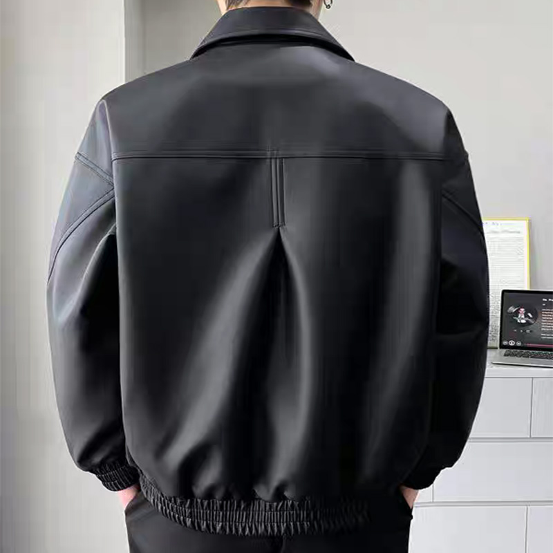 春秋季男士翻领皮衣美式潮牌PU夹克宽松休闲机车情侣款学生外套男