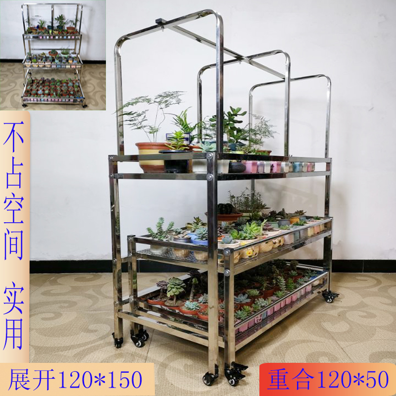 轻奢多肉推拉移动带轮不锈钢花架阶梯落地式简约阳台室外防雨定制