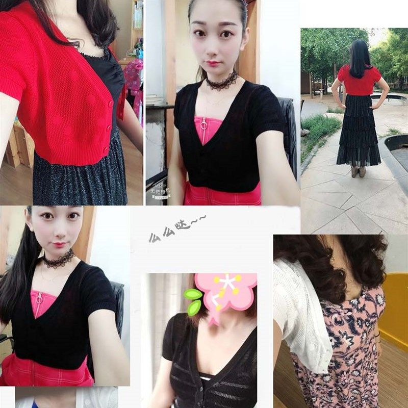 夏季百搭小披肩女短款空调衫外搭开衫短袖薄镂空针织衫冰丝小坎肩