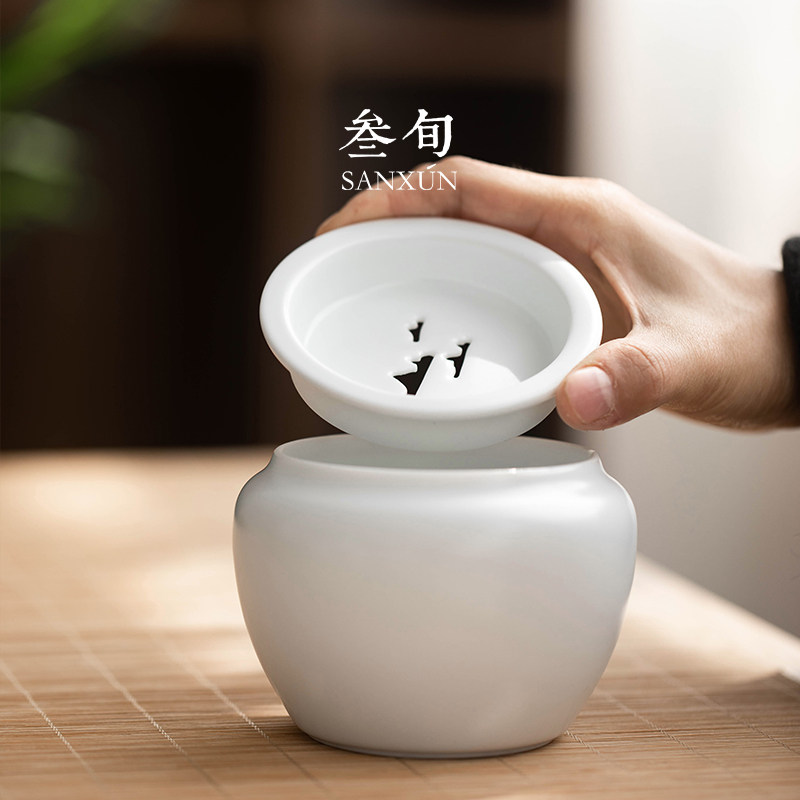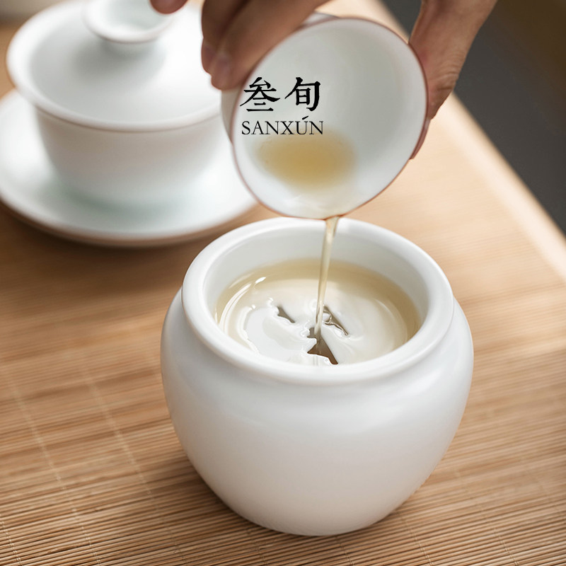 叁旬 脂白建水家用陶瓷带盖茶洗杯洗小号茶渣缸水盂功夫茶道配件