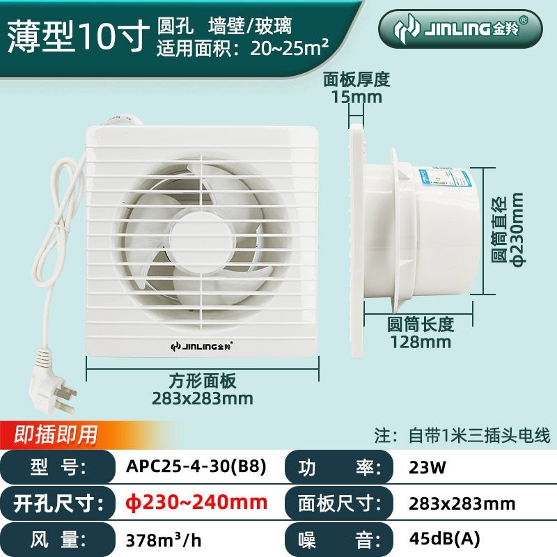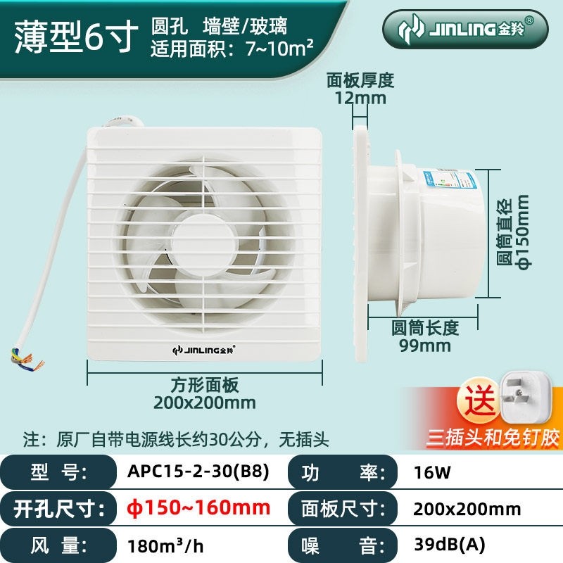 金羚排气扇超薄橱窗式浴室卫生间音抽风家用换气扇排风厨房强力静