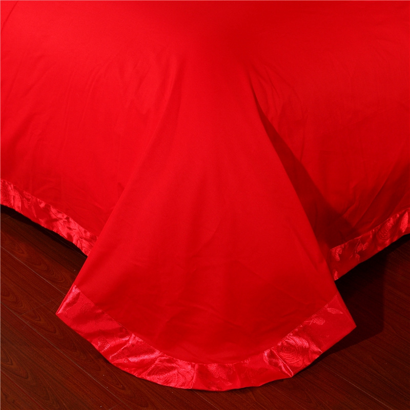 喜嫁大红色结婚床上用品四件套纯棉贡缎提花婚庆床单被套2.2X2.4