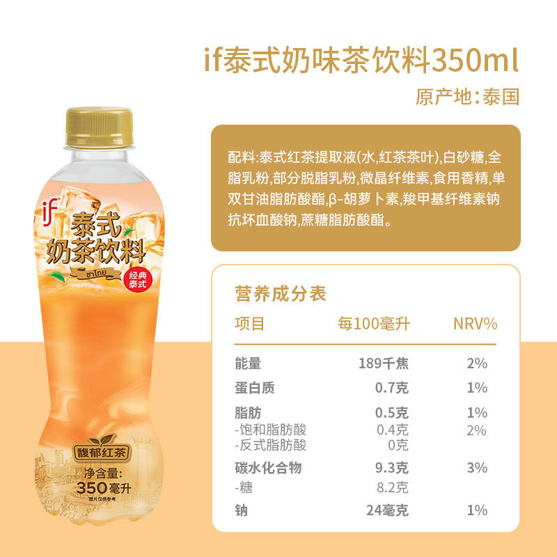 if泰国进口泰式奶味茶饮料红茶奶茶下午茶休闲饮品350ml瓶装新品