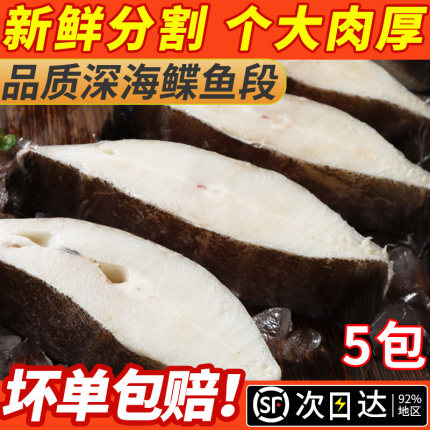 鲽鱼身段雅片鸦片鱼片比目鱼切段蝶鱼块冷冻深海碟鱼碟鱼块5斤装