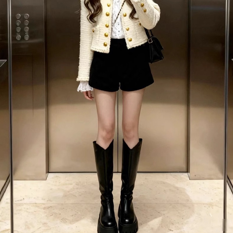 黑色加绒短裤女秋冬2025新款a字热辣妹裤小个子加绒打底外穿靴裤
