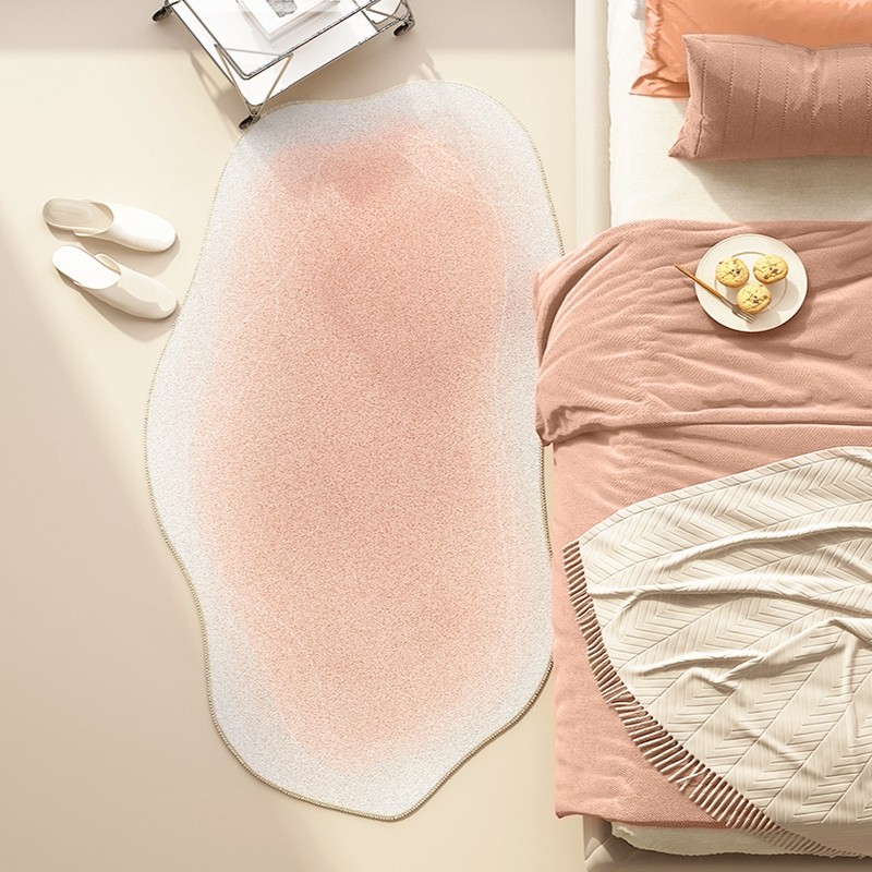 绿色仿羊绒床边地毯异形不规则卧室床前主卧房间地垫高级感垫子