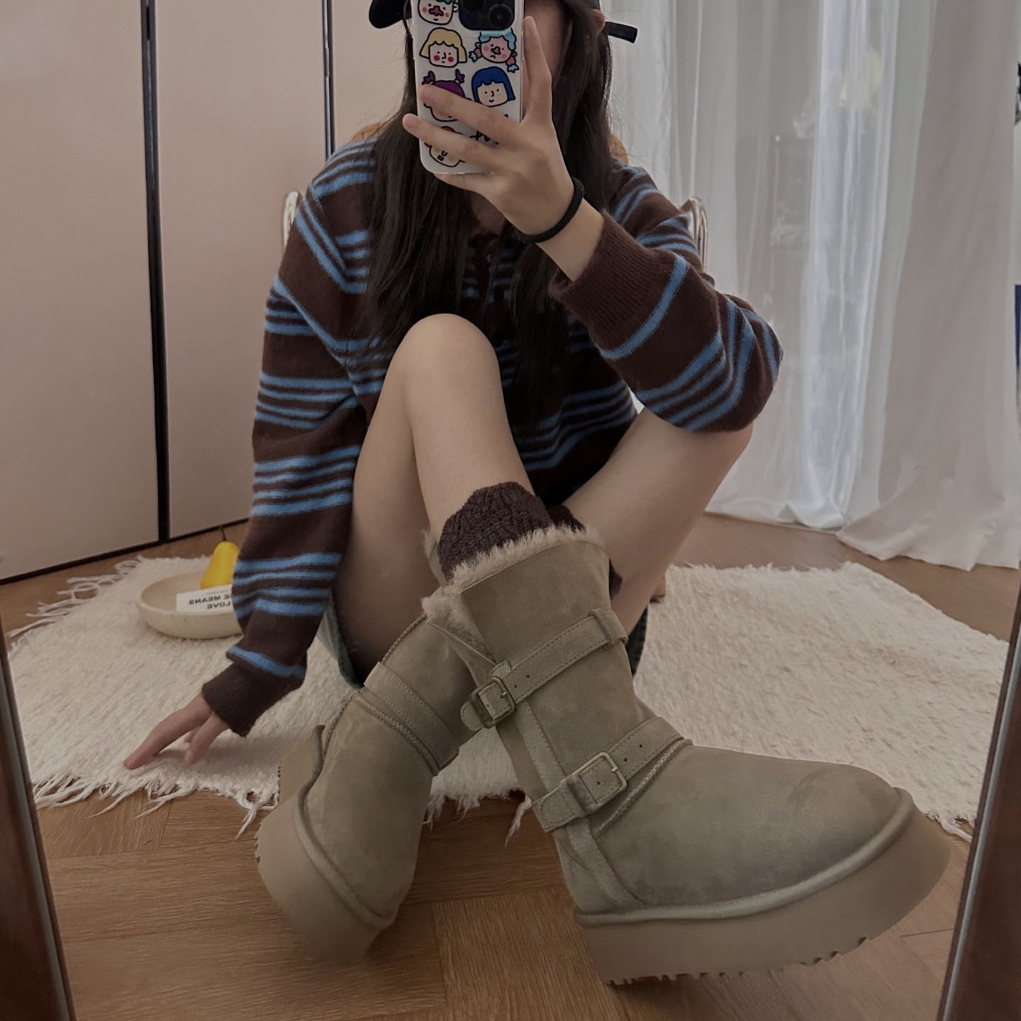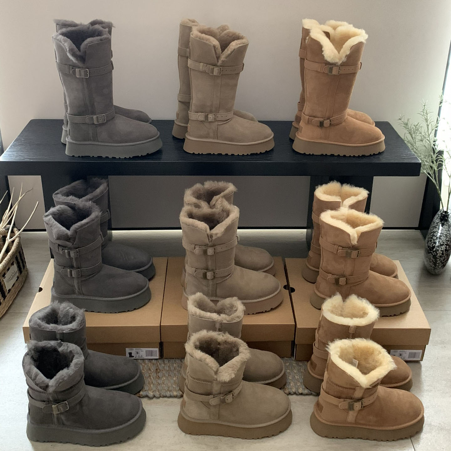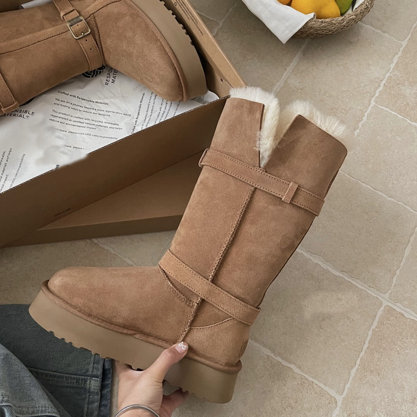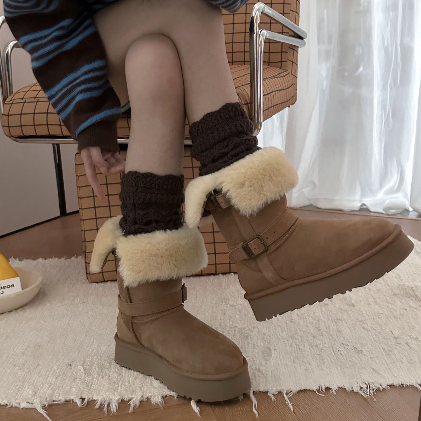 桑坡女靴羊皮毛一体女U家厚底雪地靴中高筒冬保暖女神两穿骑士靴