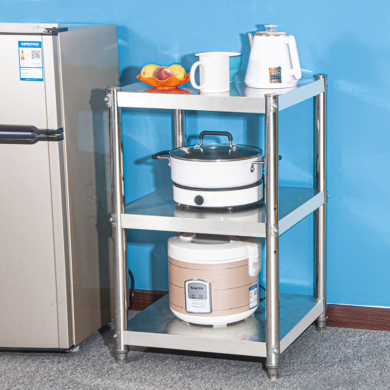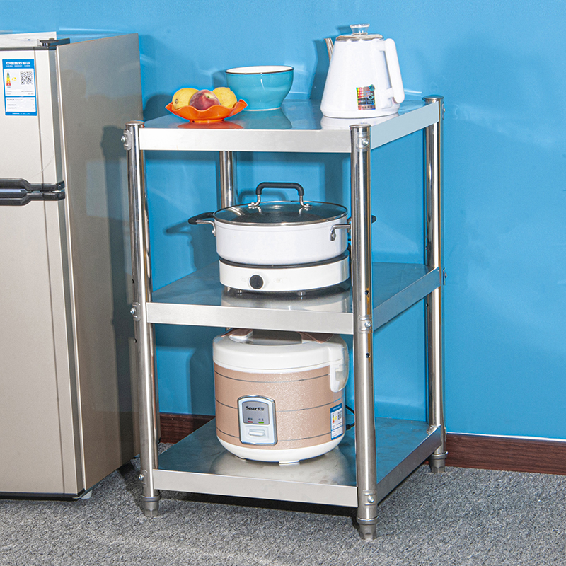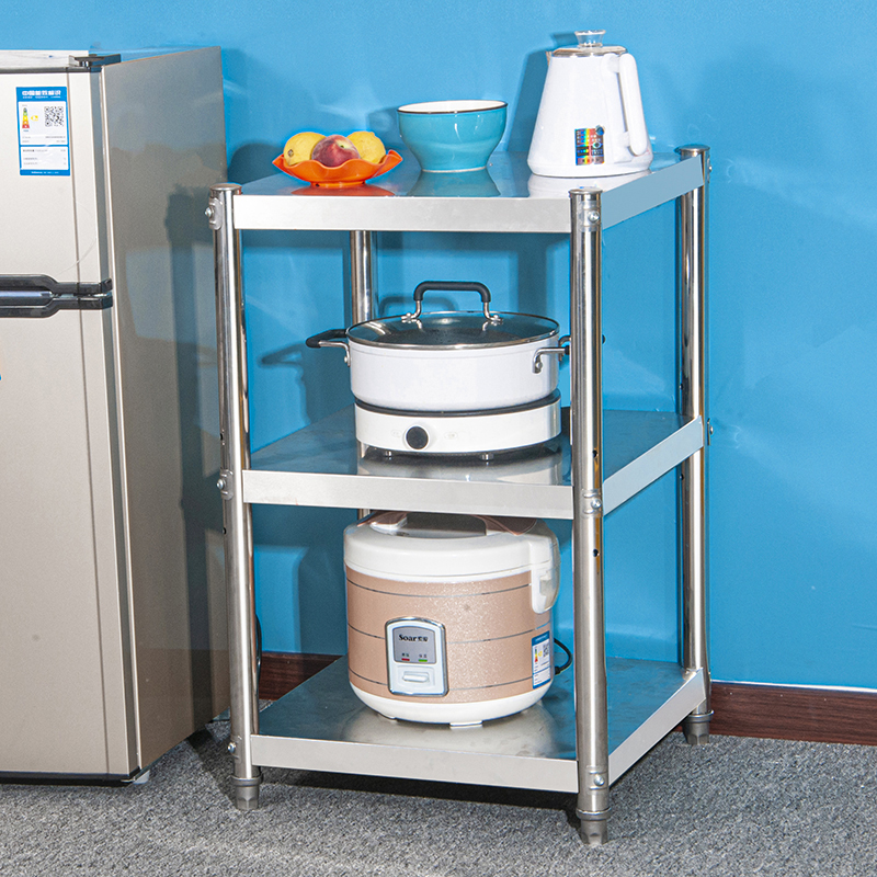 不锈钢厨房置物架落地微波炉收纳烤箱三层正方形架家用储物小架子