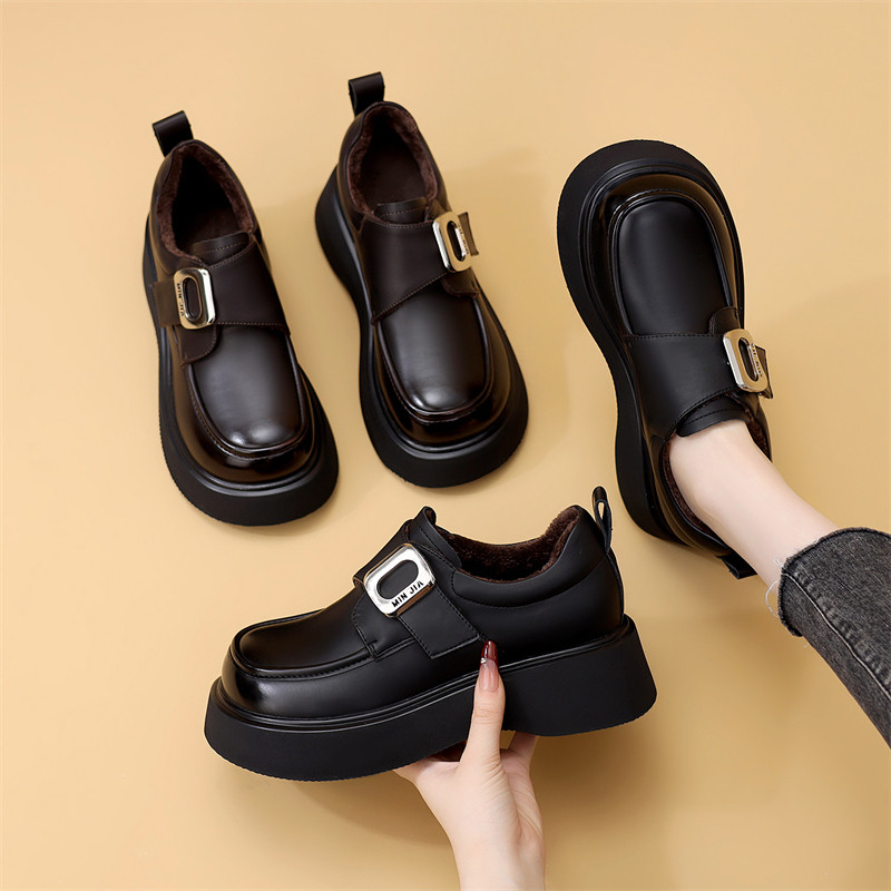 2025年秋冬新款英伦风加绒乐福鞋