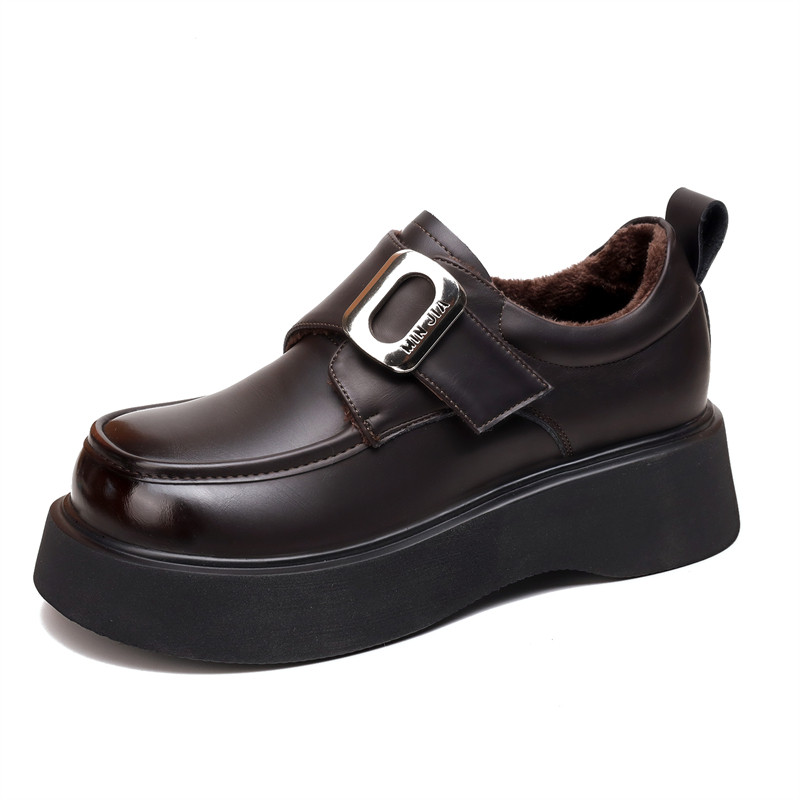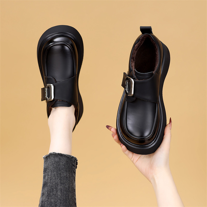 英伦风圆头厚底乐福鞋女2025年秋冬季保暖加绒女靴时尚百搭小皮鞋